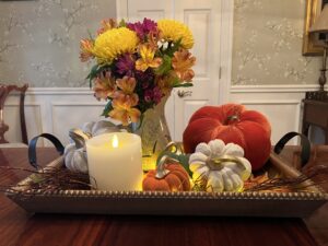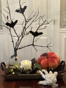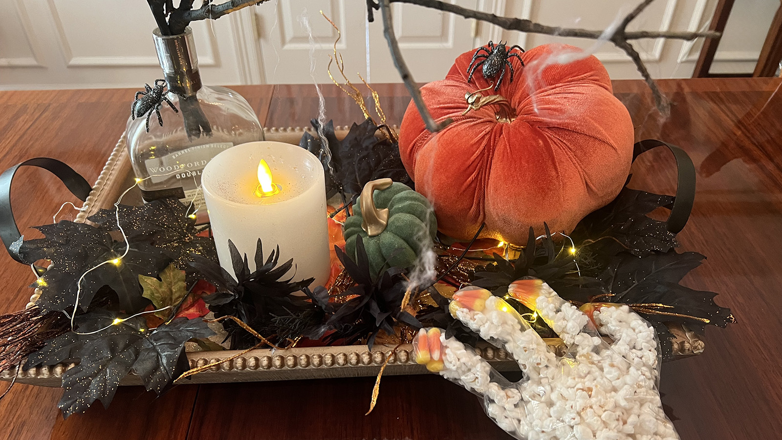 Create a centerpiece that will take you from Halloween to Thanksgiving with a few inexpensive items from the dollar store and items you already own.