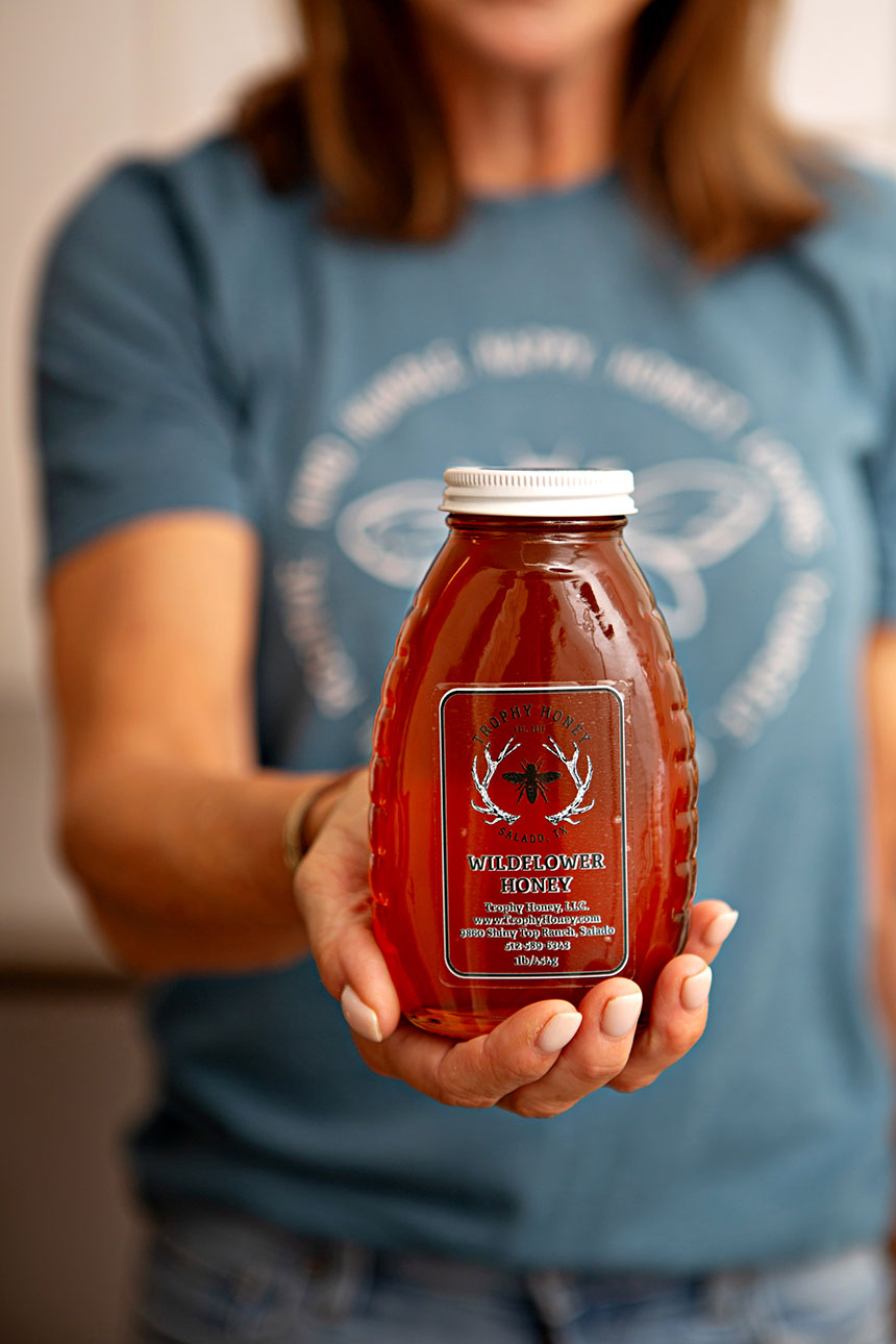 While they once sold honey at the Salado Farmers Market at Barrow Brewing, their busy schedules no longer allowed for the weekly market. Today, Trophy Honey can be found at The Shoppes on Main in Salado. Still, Kelly cherishes the memories of sharing her passion face-to-face at the market.