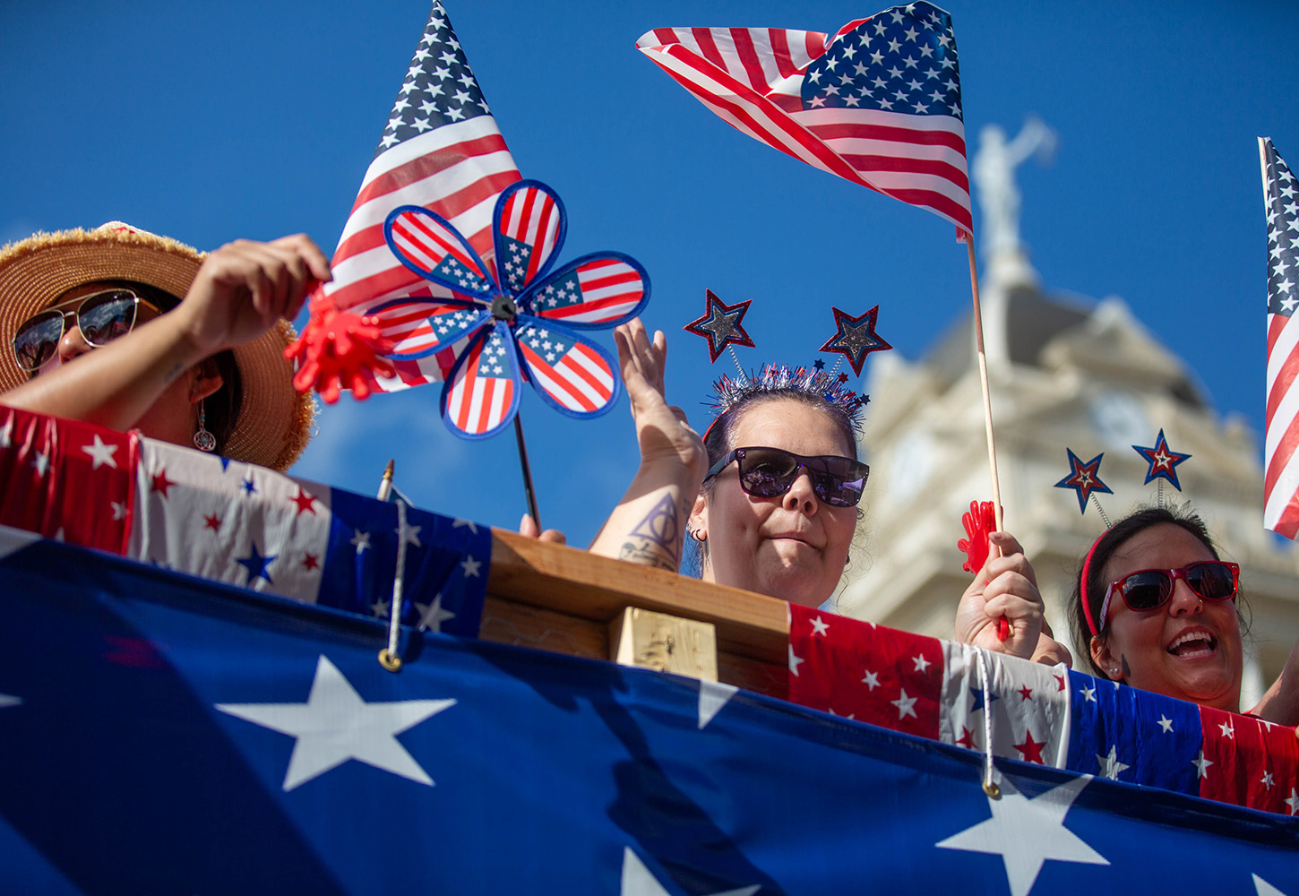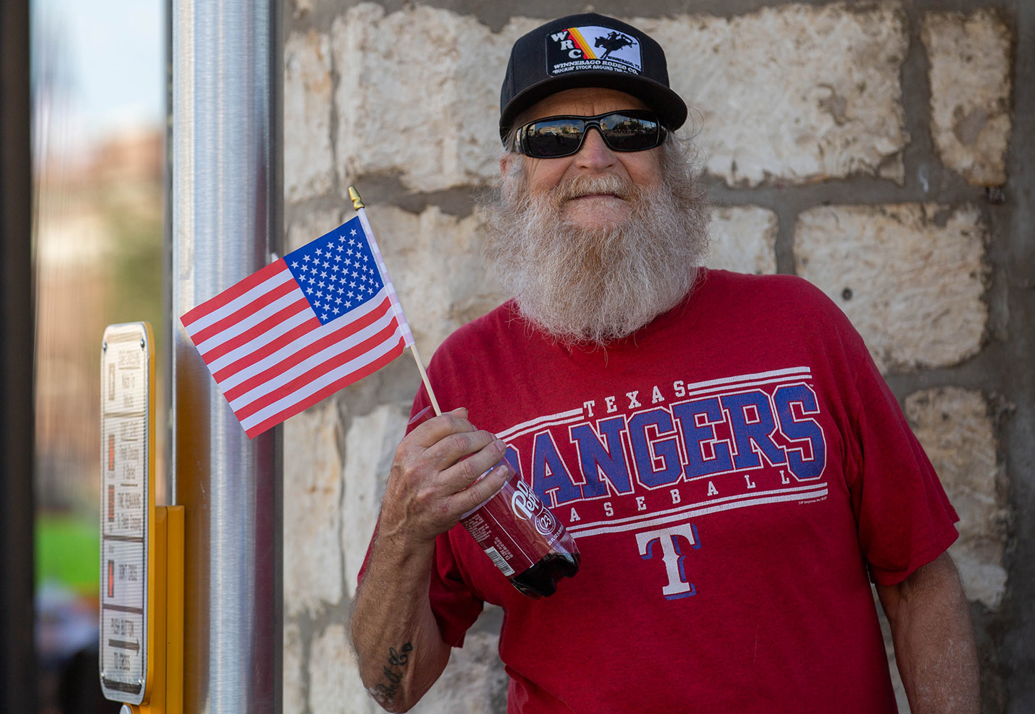 William Johnson smiles and waves his flag as the Belton Fourth of July parade begins. The annual event brings thousands of residents and visitors to downtown Belton.