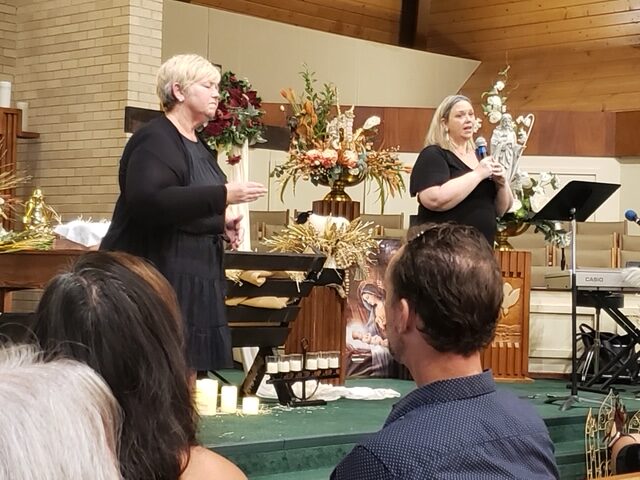 Carol Beth Northen Taylor sings “Ordinary Baby,” with sign language interpretation by Royda Northen Frazier.