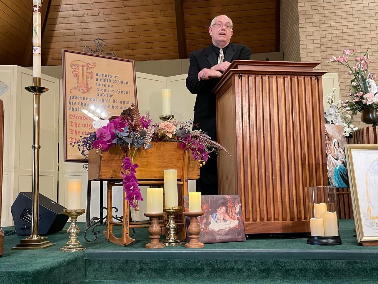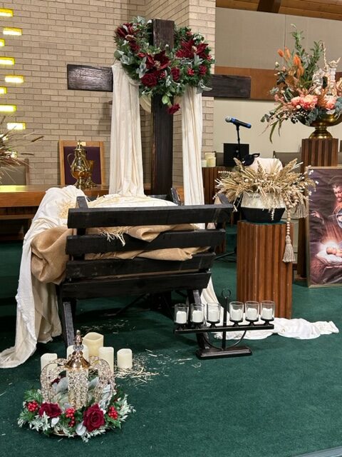 “The Cradle, The Cross and The Crown” floral arrangement was designed by Norman Northen.