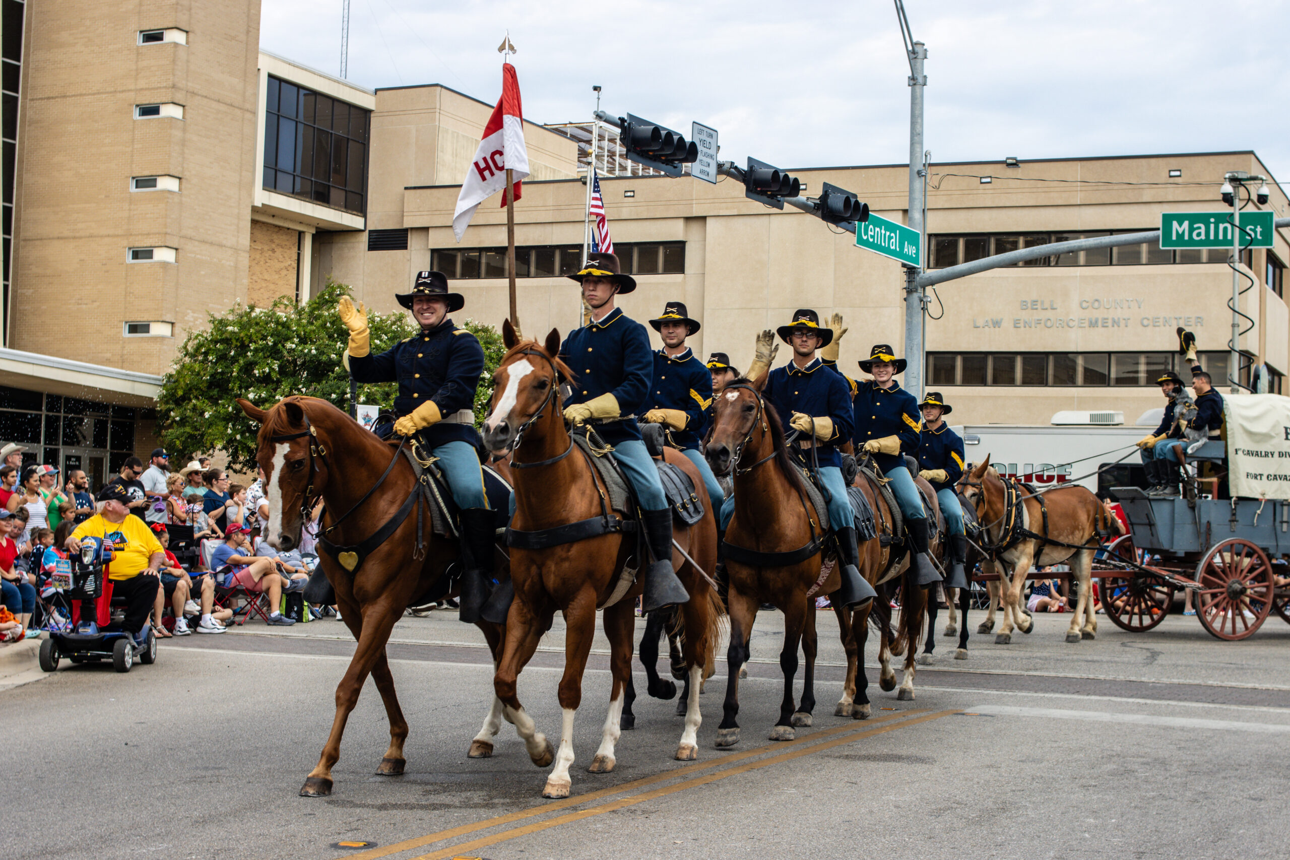 The 1st Cavalry Horse Detachment rides down the streets in Belton.