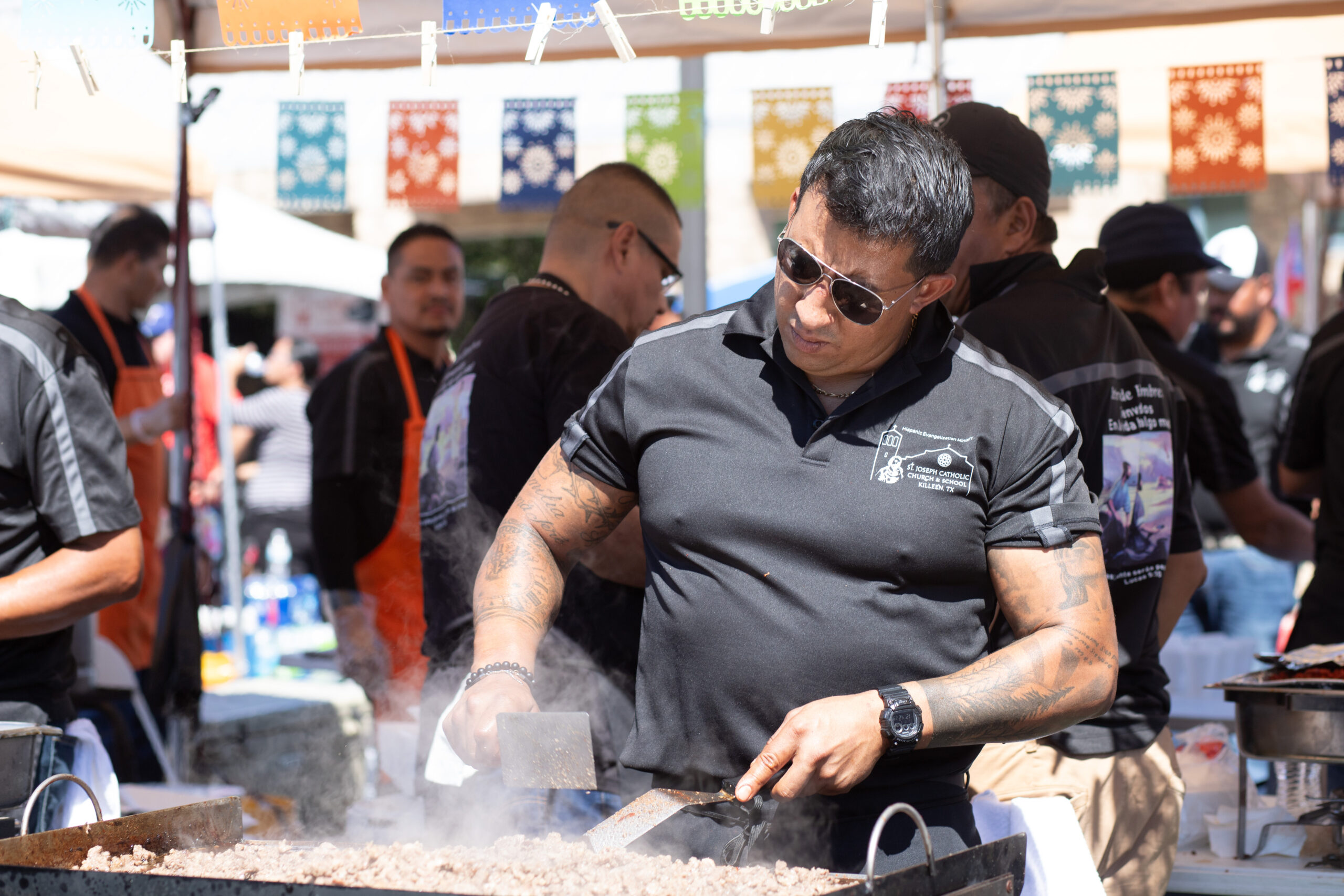 Scene Scene: St. Joseph Fest of All November 21, 2023 Tex Appeal staff Fest of All, St. Joseph Catholic Church Photos by BECKY STINEHOUR An archer sets his aim in the Tiger Town booth at the St. Joseph Fest of All in Killeen. Three ministry groups teamed up to serve delicious Puerto Rican and Panamanian dishes at the St. Joseph Fest of All. The Bienvenidos Ministry Group prepares the ingredients for taco plates at the St. Joseph Fest of All. A Korean dancers pauses after performing a traditional dance on Oct. 8. Rising Country Star Matt Castillo performs at the Fest of All at St Joseph Catholic Church in Killeen.