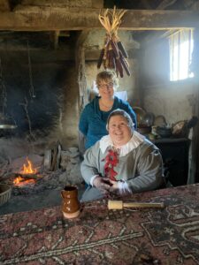 Just steps from the dining hall, you suddenly immerse yourself in daily life, centuries before, with “colonists” and actual Wampanoag tribe members. We were encouraged to make conversation with all we encountered. Dressed in deerskin clothing, a wolf rug at his feet and feathers in his hair, a gentleman explained how a canoe-like structure was fashioned out of a hollowed tree. Nearby, a woman was smoking a chicken over an open-pit fire.
